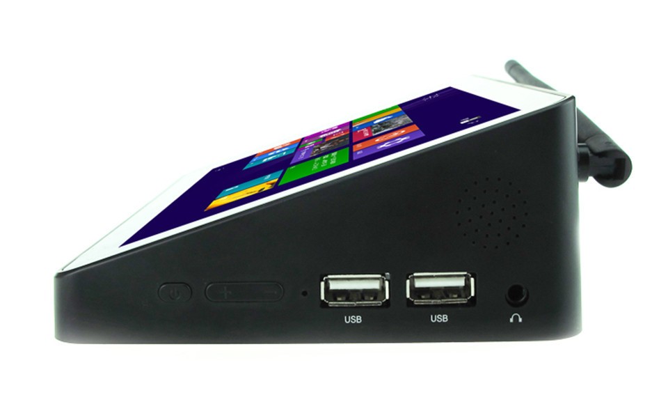PiPo X8S Mini PC supports Windowns 10 and Android 4.4 dual OS, uses Intel Z3735 quad core CPU, has a 7 inch 1280*800 pixels IPS screen, with four standard USB port, wifi and RJ45.